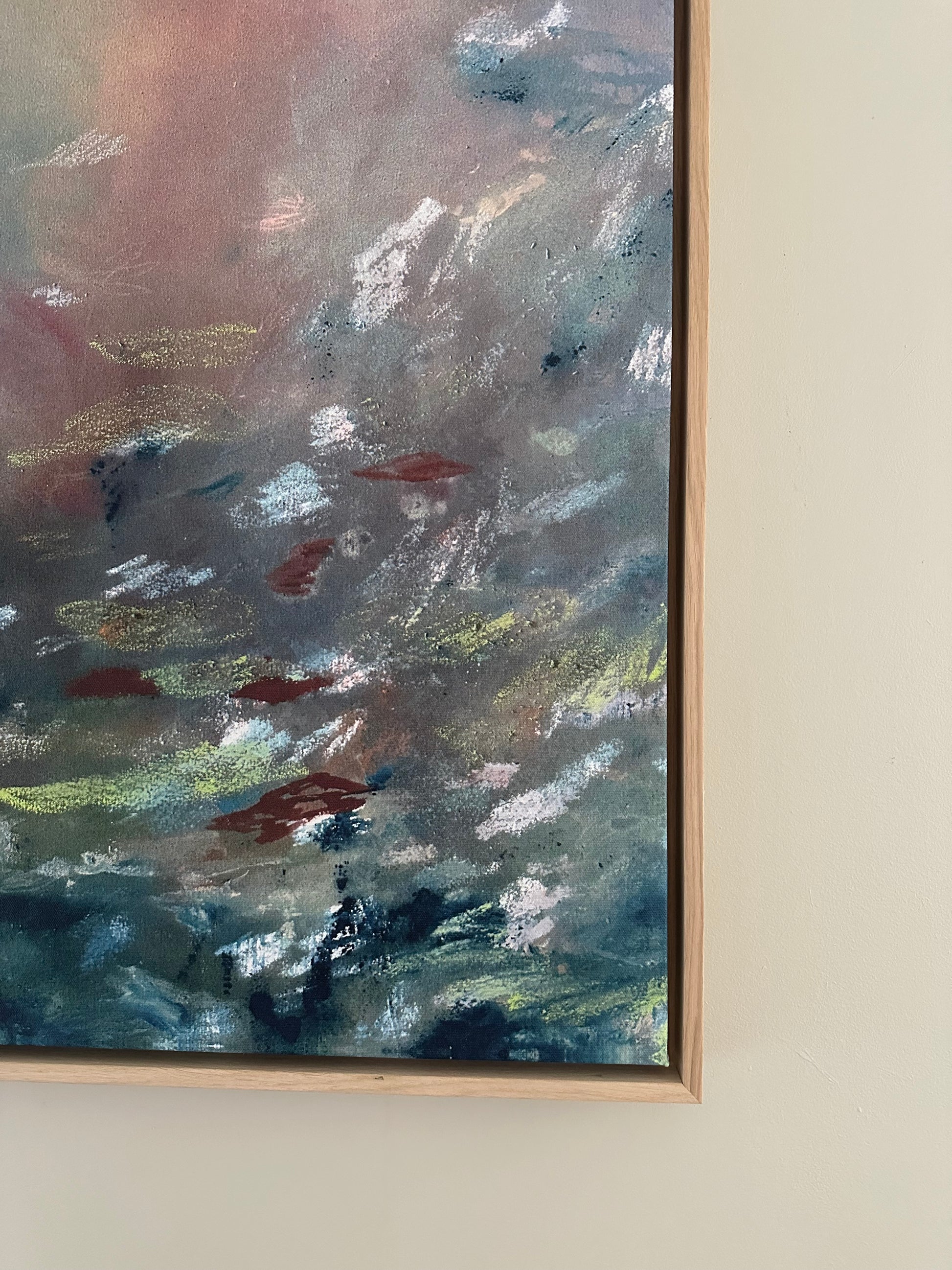 Giclée print of an original mixed media painting on raw cotton canvas.