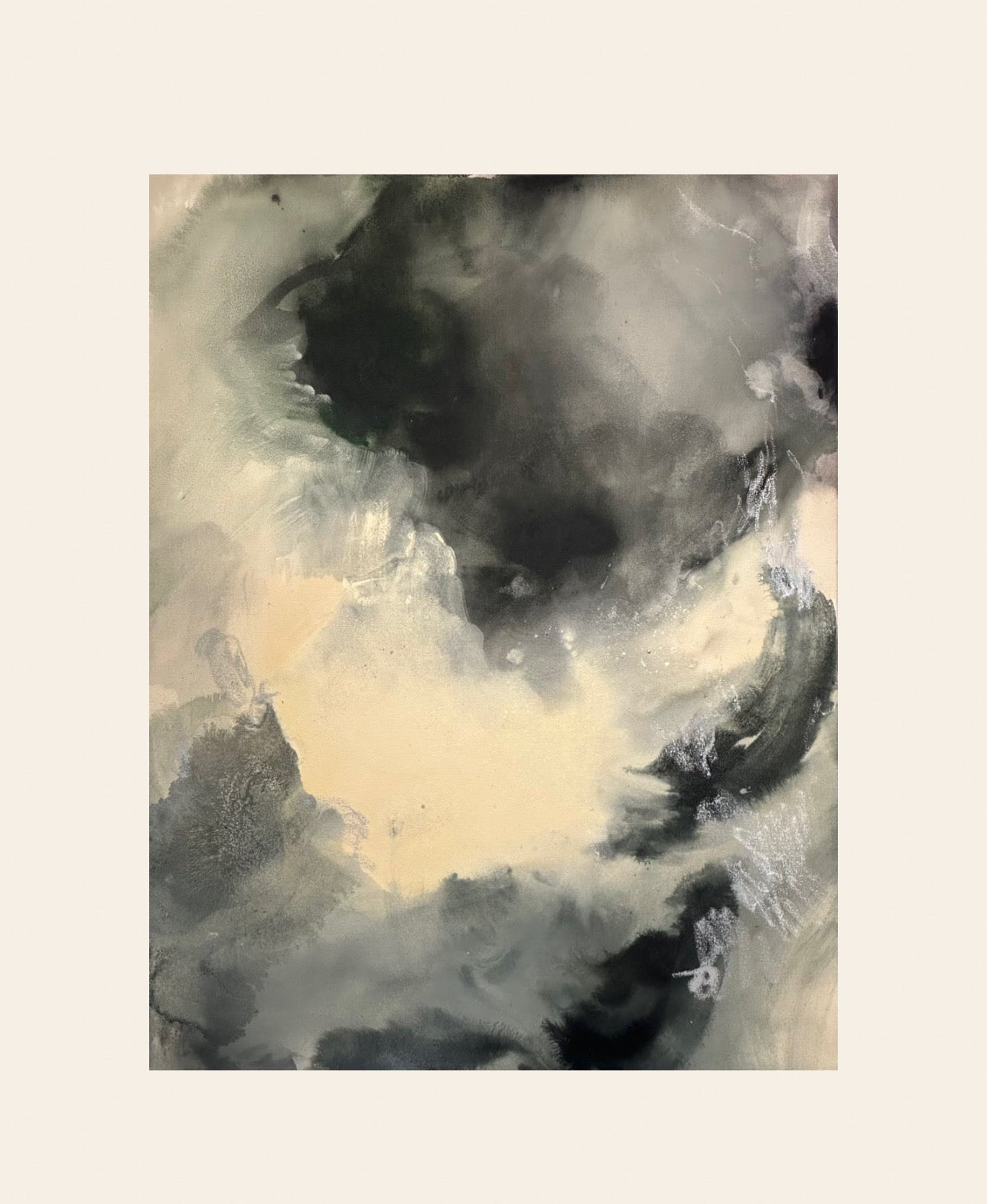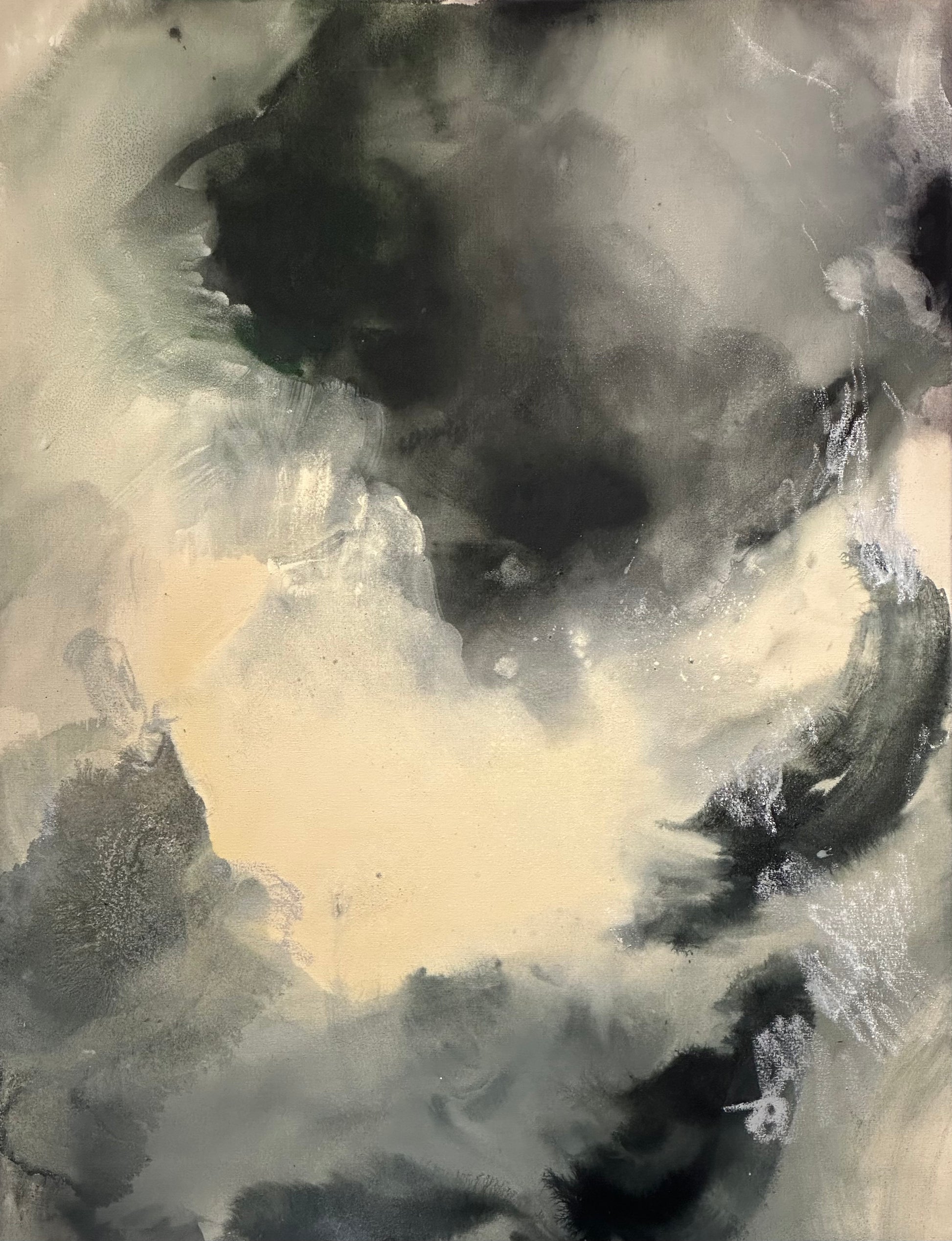 acrylic paint, oil stick, salt, acrylic ink, pigment