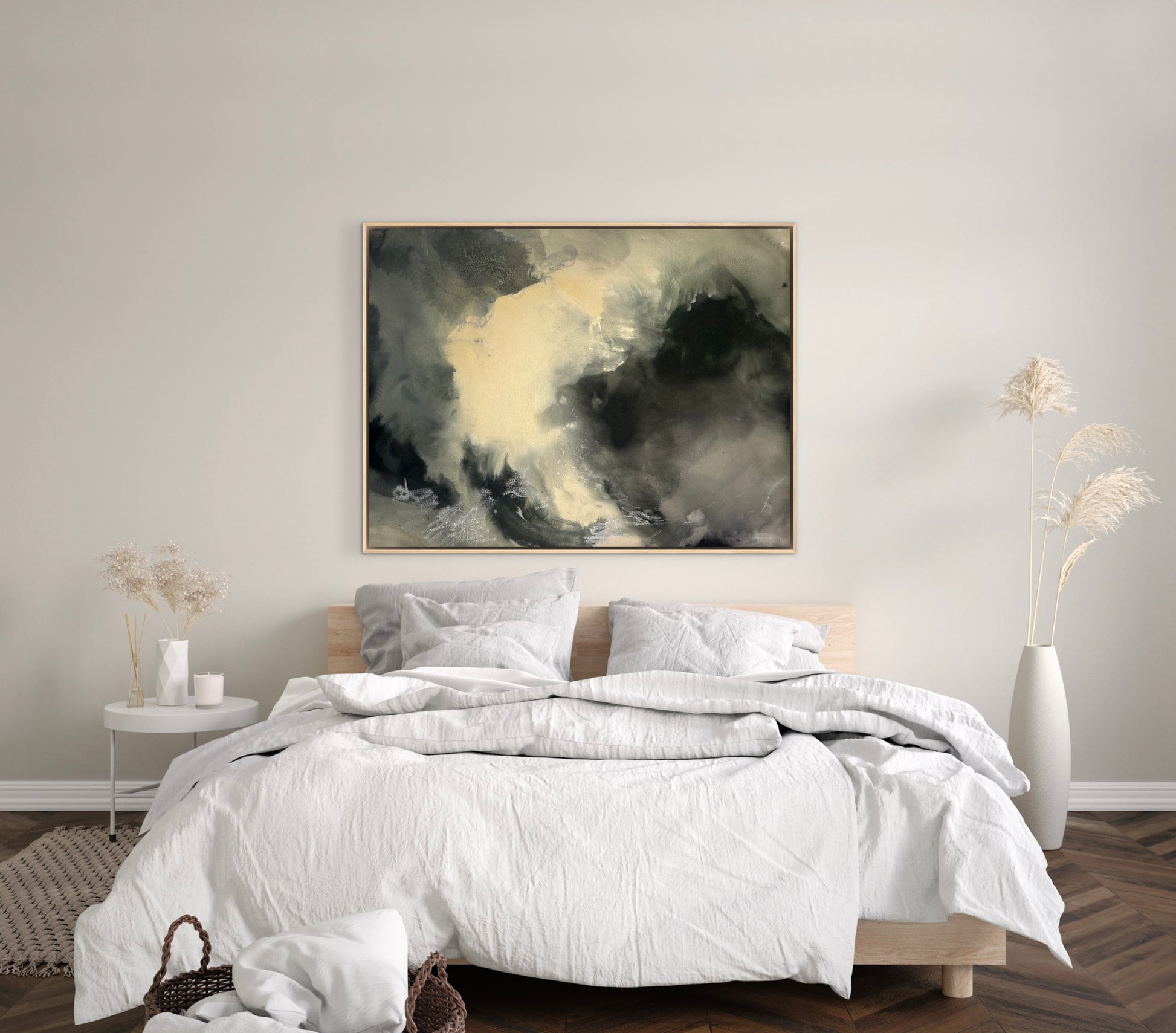 This expertly crafted black and white abstract painting titled "Stress Relief" is ready to hang, offering a sophisticated visual escape. Its dynamic contrasts and fluid forms create a calming yet engaging atmosphere, making it an ideal piece to enhance any contemporary space while promoting tranquility and focus.
